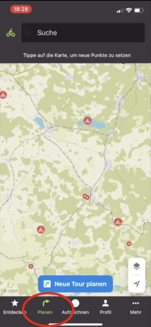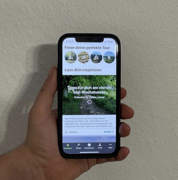 • Öffnete die Komoot App auf deinem Smartphone