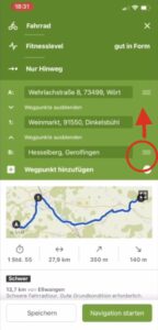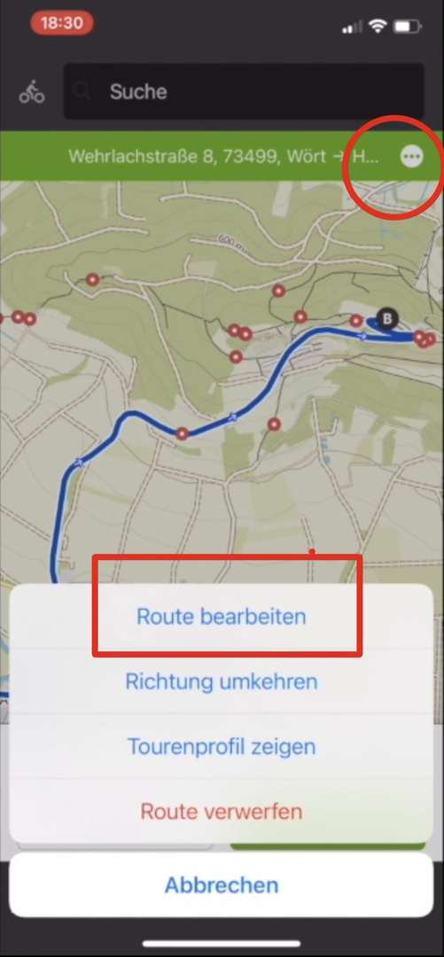 • Route bearbeiten: Klick auf 3 Punkte