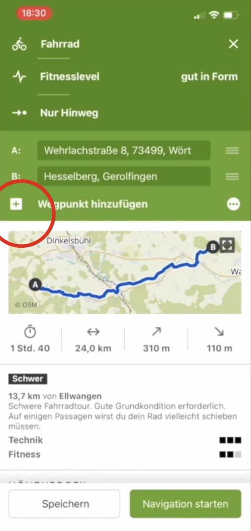 Fahrradtour auf der Komoot Smartphone App planen, Step by Step Beschreibung: