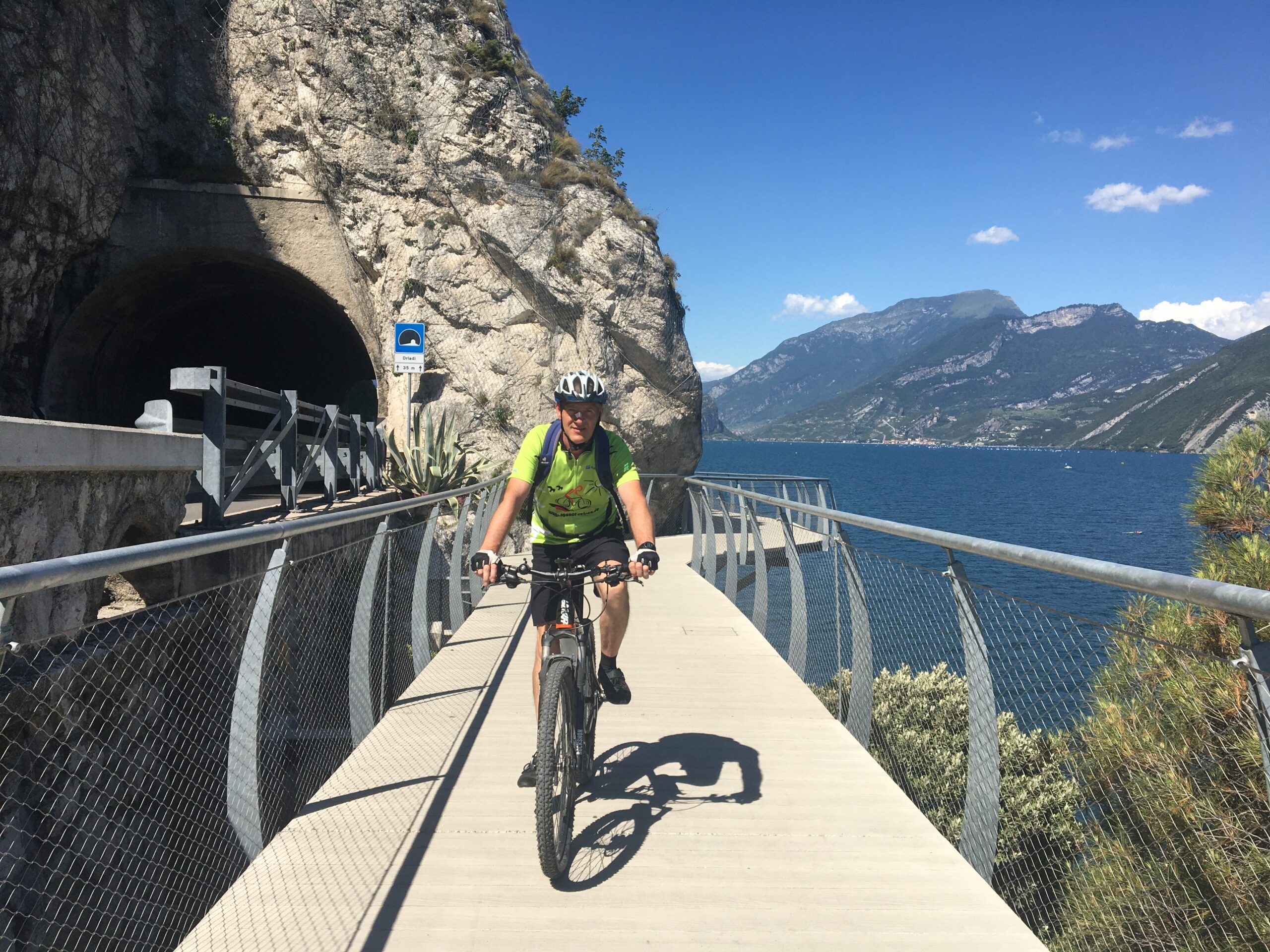 leider sind auf der Ost- und Westseite immer noch Tunnels, weil der Radweg noch nicht fertig ist. Es ist wichtig, dass man Gardasee mit Licht und am besten mit Warnweste fährt. Gruss Paul Launer