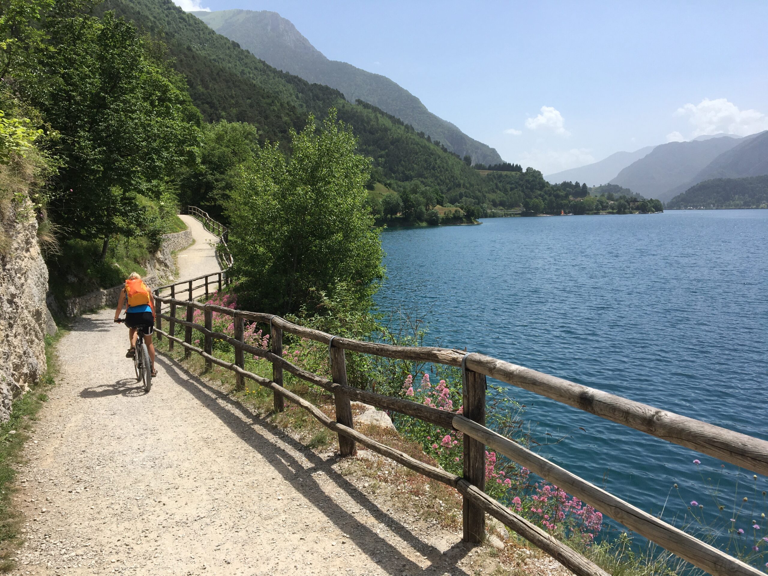 Eine ebenfalls sehr schöne Rad-Strecke ist die ca. 10 Km lange alte Verbindungsstraße von Riva del Garda zum Ledrosee (Ponalestraße). Hier muss man zwar ca. 1.000 Hm überwinden doch der Blick hinunter zum Gardasee ist einfach nur atemberaubend und die Strecke wird sogar als eine der schönsten Radstrecken der Welt bezeichnet. Oben angekommen, empfiehlt es sich, den ruhig und idyllisch gelegenen Ledrosee zu Fuß oder per Rad zu umrunden (8,5 Km).
