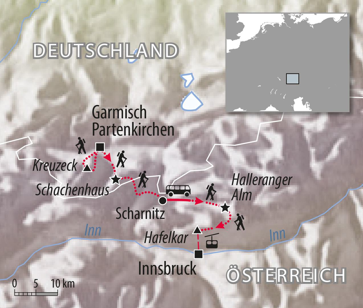 - Gepäcktransfer (außer bei Übernachtung Schachenhaus)